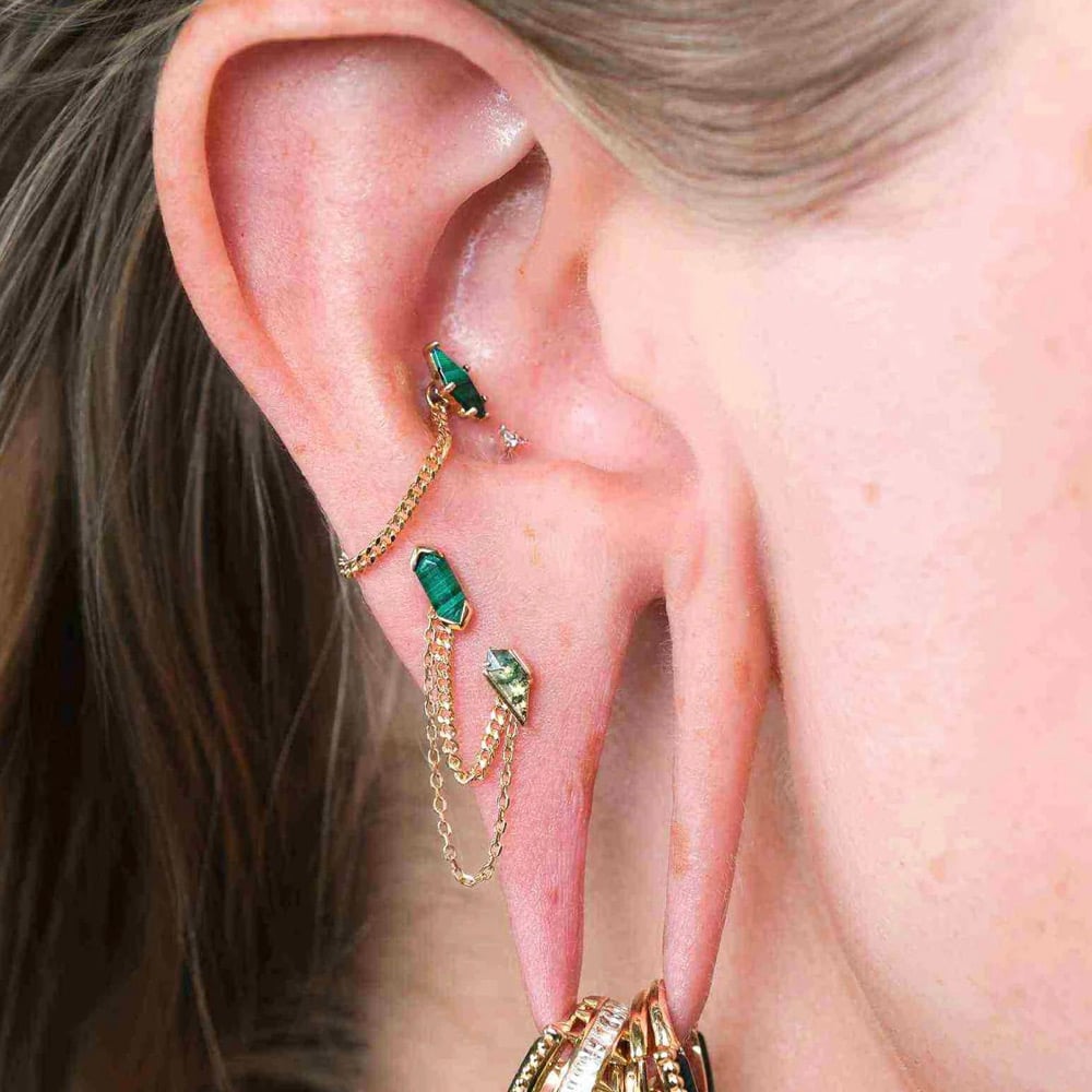 Gemstone: (1) 6mm x 2.5mm Malachite (single cut elongated hexagon)
